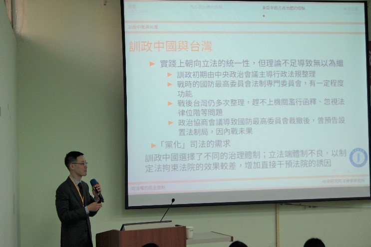 第二場發表人為中央研究院法律學研究所吳宗謀副研究員,報告之議題為「司法權的民主控制」,強調必須用更寬的視野,看待臺灣司法的民主正當性問題。在國家之政治形式下,司法組織無法脫離主權而取得正當性,且西方國家司法的「民主化」環境,與臺灣的條件亦有相當落差,無法一體適用。基於現代治理體制的制約,應先確保立法的一致性,因此未來應先解決政府法制的統合性問題。以法務部之定位為例,其有兩個面向,一為立法面的法案起草修訂與有權解釋,必須維持政府一貫之見解;另一為法務部長須否經立法院同意之問題。綜觀西方與東亞國家的司法制度發展脈絡,回顧我國的行政、立法與司法三面的控制與整合關係,為維繫民主憲政秩序下的體制,保障個人權益的完整性,了解不同國家三權之間的時代趨勢,應有其必要性。